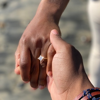 The ring belonged to Eric's mother, Michelle. Actually, Michelle found the ring over 30 years ago on a beach while searching for shells and pebbles in the sand with her friend. In June 2019, Eric visited his parents to share with them his plans to marry Alyssa. Eric always dreamt of having a family heirloom of sorts to pass to his future wife and/or children, that would continue to be passed for generations. When Eric asked his mother if she had anything that she had that was maybe handed down to her, or that she might want to pass down, she searched her jewelry boxes frantically in search of something. She found this ring, and gave it to him.