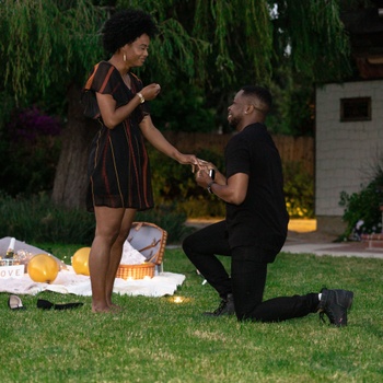 Eric planned a (fake) photoshoot “for a friend’s portfolio,” and Alyssa was down for it. Since they've been photographed for portfolios in the past, this was not out of the ordinary to Alyssa. Brandon's (the photographer) fiancé Ariel is a make up artist and offered to do Alyssa's make up for the shoot; and Alyssa's roommates facilitated a fake nail/spa day, so that her nails would be done as well. While they walked around the Claremont Colleges taking photos (eventually being kicked off the campus because...COVID-19), Eric's roommates, their fiancé’s, and two other friends set up a picnic at a nearby park.