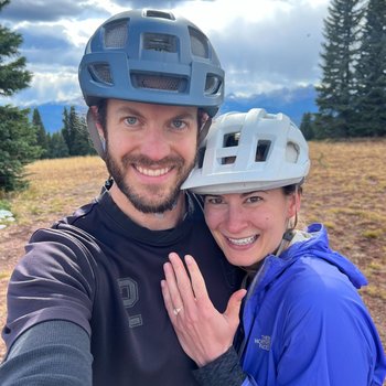 After two years of being nearly inseparable while playing in the mountains, Mike decided it was time to seal the deal. In true Mike fashion, he got down on one knee before descending one of their favorite mountain bike trails. And Bria said YES, OF COURSE.