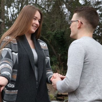 Lexi had come to visit me in Lakewood, Washington for a week before the Christmas holidays. I had been planning to propose, with my parents and her parent's permission, for a while. I rented us a farmhouse that was next to pastures of goats and chickens. Lexi was becoming suspicious and had started to suspect something was up.  I kept denying anything was going on. On the last morning we started to pack up our stuff and that’s when I said, I had something to say to her. I finally told her, “I’ve been lying” as I got down on one knee!