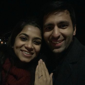 The midnight stroll was dark, cold and definitely isolated. They were walking on a bridge covered with very few Christmas lights. There was nobody else on the road. Dimple, a little scared like any sane person, held on to Anukul's arms tightly while Anukul was talking about stars and wanting to walk down to the dock area. When Dimple politely declined and explained that she would like to avoid them slipping into a freezing lake, Anukul said "so this is where it's going to be..." and he proposed to Dimple on the bridge with stars bearing as their witness.