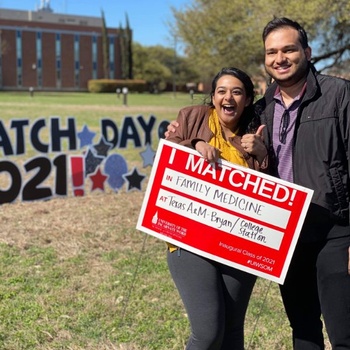 “I had never seen her so intense and focused as when she made her residency rank list. It was a stressful experience for me as a bystander so kudos to all you medical students! I am so proud of her and know she's going to do great things at A&M.” ~ Nikhil