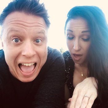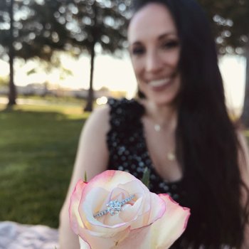 The next day we were working from home and he suggested we go on a picnic. It was a beautiful day outside so I said "Sure!". We got to the park, spread out our blanket and I knelt down to set up the plates / food. Justin was kneeling as well, but his back was to me. I asked him what he was doing and all of the sudden he turned around and handed me a rose. I immediately saw the sparkling diamond in the center. I think I froze for a minute and my mouth dropped...I was in complete shock and couldn't even formulate words at first. Tears started rolling down my cheeks. I was still kneeling at that point and I remember Justin saying "Stand up!" and that's when he asked me to marry him. I think we were both crying at that point and of course my answer was "YES!".