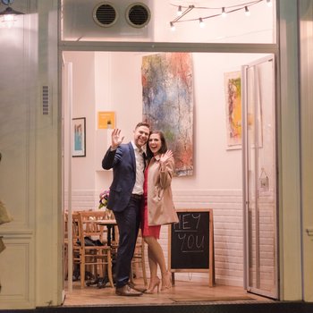 After Lauren found out she had to fly to Paris for work, and asked Kyle to join her, Kyle knew that he couldn't pass up the opportunity to propose in the most romantic city in the world.  After months of secretly preparing , Kyle ended up getting a cute little cafe to open up after hours just for the two of them.  With God opening doors and plenty of help from friends, family, and Parisian co-workers (thanks, Harmonie!), Lauren was shocked and surprised when Kyle dropped to one knee to propose. It was one of the wildest, most special moment of their lives, and a part of their story that they'll cherish forever. (And if you know Lauren, you know that she's impossible to surprise...)