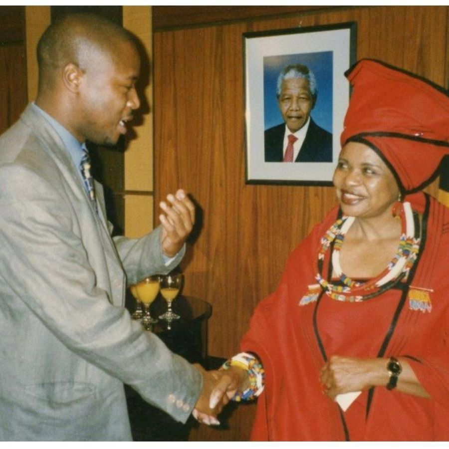 Hi Lindiwe. Makaphumle ngoxolo umama uLindiwe. When she was South African ambassador to Germany, She invited us to the embassy in Bonn. This a picture of me and her at the embassy around 1996. At the time I was living in Munich working for BMW. Unobubele ke umama uLindiwe. From Litha Nkombisa