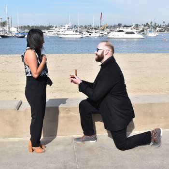 Engagement day was a surprising day, as Sammy thought she was going out to breakfast for her best friend's birthday. After an extremely difficult work night (because Sammy worked overnight at this time), she ended up running late to breakfast. She called up her friend only to discover they changed the time so she can be on time. She rushed over to Max's place, got ready and rushed right out the door. At this moment Sammy was just ranting and ranting on how bad her night was. Once the couple reached the Lighthouse Cafe in Newport Beach with friends and family around, Max got down on one knee and asked Sammy to marry him. Everything from Sammy’s previous night became a blur, and to this day she does not remember what happened at work that night. All that mattered to her was that she would soon be marrying her best friend.