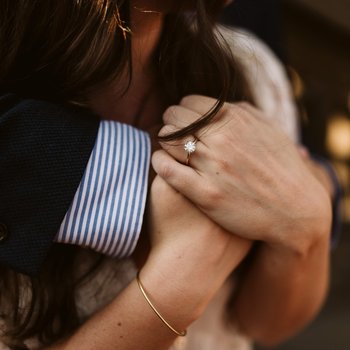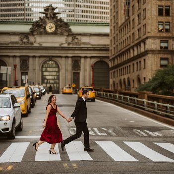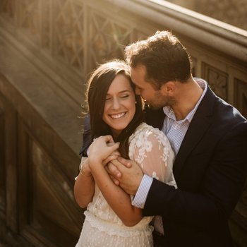 It was a sunny Saturday morning on April 6th, 2019. We were walking our dog Gracie through NYC's Central Park, with our friends Becca & Michael, and their dog Crosley. Dave was insistent that we stop at a waterfall along one of the walking paths to take a photo. Katie thought this was really strange because he isn't the type to want to take a photo. He also didn't want Gracie to be in the photo either, which was also really strange. When he turned to give Gracie to our friends, who had their phones out, Katie could see the box in his pocket. When he turned around and got down on one knee, she couldn't believe it! There was a crowded path of runners passing above us and we could hear them all cheering. It was absolutely beautiful!! After, Dave had a backpack prepared to have a picnic in the park where we popped champagne and celebrated! Later that night, Dave had a dinner reservation planned for us at a restaurant in Central Park called Tavern On The Green. It was an unforgettable day!!